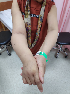 张阿姨30岁便患了乳腺癌,之后右上肢继发了淋巴水肿,由于家乡由于康复水平发展较缓慢且较为单一,过去三十余年只进行了传统物理康复以及体位摆放等康复治疗,在来清华大学附属北京清华长庚医院康复科就诊时,患侧肢体已出现非常明显的水肿及组织改变。