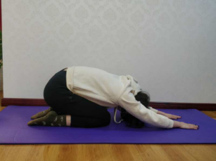 方法:上身自然向前趴下,臀部坐在脚后跟上,手臂向前延伸。保持20-30秒。