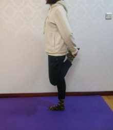 方法:单手扶墙或其他固定的地方,以维持身体稳定,另一侧向后屈膝,并用手抓住脚踝部位,尽量使脚触碰臀部,坚持15-20秒。