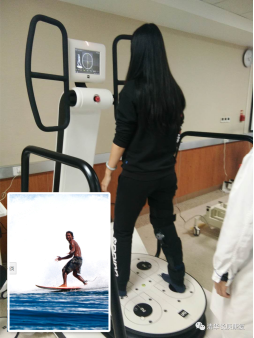 苏胜民治疗师对蒋女士进行系统的功能评估,根据肿胀疼痛、屈膝受限、步态异常等功能障碍问题制定了详细的康复训练计划,在常规的物理因子和运动康复锻炼的基础上,增加了HUBER360训练。传统的康复方法偏重于训练肌肉力量,忽略了神经对肌肉的控制能力。HUBER360可以对患者的核心稳定性、姿势和动作控制进行系统的评估,在不稳定的训练平台上通过不同姿势和动作控制进行有针对性的康复训练,通过力量感应智能手柄控制力的方向和大小,类似于海上冲浪的体验感,大大增加了康复的乐趣, HUBER360可以智能化逐步进阶提高训练难度,在提高核心稳定性和本体感觉的同时也提高了肌肉力量及耐力。更达到提高神经系统对运动肌肉的控制能力,运动功能逐步提高的同时伤痛也在慢慢减退, 让康复事半功倍。