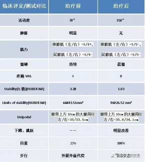 苏老师在常规康复训治疗的基础上利用HUBER360智能化评估-训练系统指导蒋女士进行强化康复训练,因右膝肿胀、疼痛、活动受限早期评估结果给予蒋女士的训练难度较低,随着评估和训练结果的好转,训练难度逐渐加大,训练过程也那么枯燥和痛苦难捱。经过一段时间的系统治疗后,蒋女士的疼痛明显得到缓解,肿胀逐渐消失了,在支具辅助下已经可以独立行走啦! 蒋女士的心情也开朗和乐观了很多。在徐泉医生和苏老师的耐心帮助和精心指导下,三个月后,蒋女士终于可以摆脱伤痛的烦恼,轻松愉快地回归到正常生活和运动了。