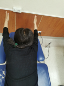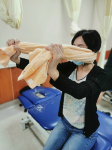 典型的颈型颈椎病,首先要解决的是肩颈部的肌肉紧张问题,热敷或者牵拉都是很好的方法,在指导患者进行牵拉的同时,辅以手法松解,经过两次治疗后,患者自述疼痛有所减轻。