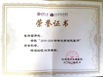 “宝剑锋从磨砺出,梅花香自苦寒来”,付出的努力终会得到收获。继落成康复住院医师培训基地,康复医学科教学团队荣获 2017-2018学年院级“优秀教学团队”及“住培基地建设特别绩效奖”,同时徐泉医生获得“优秀临床教学管理者”,2019年度成功获批清华大学研究生教育教学改革项目《清华大学医学研究生医工交叉思维培养课程探索》的资金支持。潘钰主任作为教学负责人,全面负责康复医学科教学工作。科室目前有康复医师9名,专业方向包括神经康复、骨科康复、内科康复、肿瘤康复和儿童康复等。现有主任医师1名,主治医师3名,住院医师4名;康复治疗师共24名,中级职称康复治疗师5名,科室人员中具有博士学历6名,硕士学历9名,博士在读1名。科室外聘台湾长庚医院许宏志教授作为特聘专家,定期来我科进行临床、教学与科研指导。教师节来临之际,北京清华长庚医院举办2019-2020学年庆祝教师节暨教育教学表彰大会,康复医学科翟晓雪医师获优秀住院医师称号。