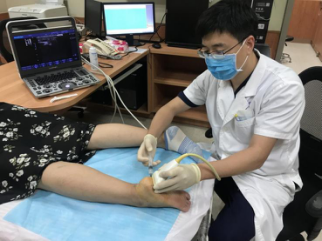 图9 可视化超声引导下药物注射治疗足底筋膜炎