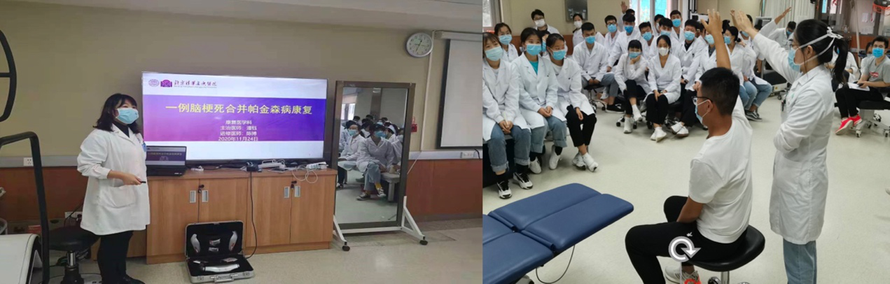 最让我印象深刻的是这里浓厚的学习氛围及每位老师严谨认真的教学态度。每一位老师都把教学当成了自己的责任,毫无保留,倾囊相授。对于零基础的我,杨绯老师每天查看病人时都给我讲解每一个治疗方法、目标,每一个器械的原理用途,为我这个“康复小白”打开了通往康复治疗的大门。每周的科主任查房,潘钰主任给予治疗建议的同时对每一个病人的透彻的分析讲解,让我茅塞顿开。每周的教学查房,从问病史、查体、诊断、治疗到疾病的分析,让我逐渐有了更系统的康复临床思维。此外每周还有临床理论课、康复技术的实操课、读书会等丰富多彩的教学活动。每月一次的病例汇报,从病人的诊断、治疗入手,查阅大量的文献,与治疗师一起对病例进行剖析,最后由主治医师点评,使自己的能力得到极大的提高。我还有幸参加了两次全国康复医学学术会议,让我开阔了眼界,增长了见识。