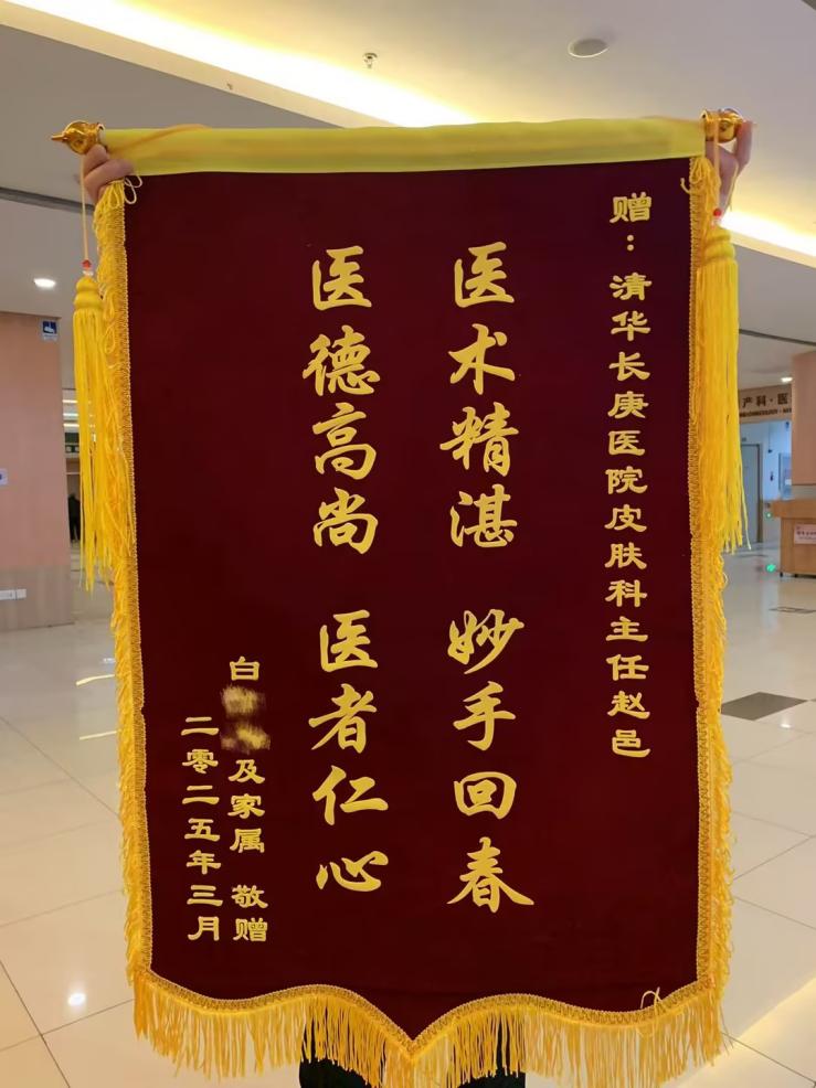 在医护团队的精心治疗和关怀下,白女士的病情开始好转。皮肤上的丘疹逐渐消退,关节疼痛减轻,嘶哑的声音和鼻塞的症状也有了显著的改善。更让她感动的是,治疗期间,医护人员们不仅细致执行治疗方案,还常陪她聊天疏解焦虑。“赵主任每一句安慰、每一个微笑,都让我感受到医者仁心的温暖,也让我增强了战胜病魔的信心。”白女士在感谢信中写道。