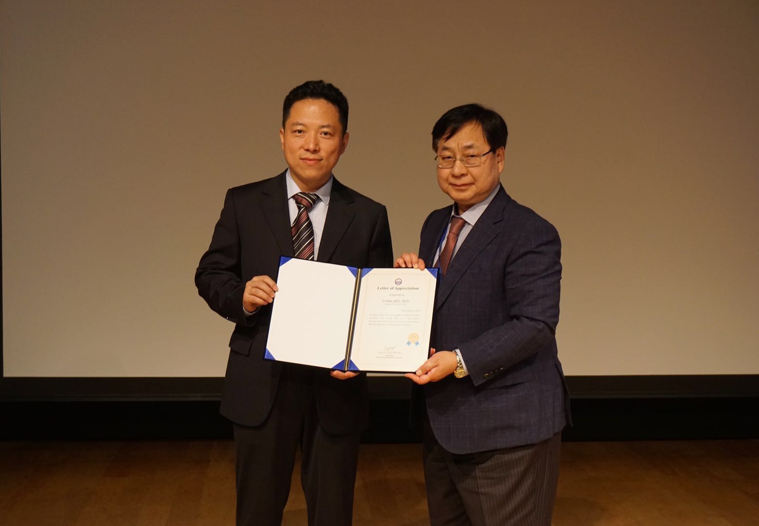 韩国银屑病学会(Korean Society for Psoriasis, KSP)21届年会于 2017年9月23日在首尔Bear Hall举办,会议由200多名韩国皮肤科专家参加,并邀请奥地利维也纳医科大学皮肤科主任Georg Stingl教授,日本顺天堂大学皮肤科主任Shigaku Ikeda,日本东海大学皮肤科主任Tomotaka Mabuchi教授等国际著名学者参加,我院皮肤科主任赵邑教授受大会主席Hae-Jun Song教授邀请在本次KSP年会上发表题为“The long way to a successful management of psoriasis ”的特别演讲,对银屑病的长期诊疗及序贯治疗方法进行了阐述,并与国际同仁进行了友好交流。