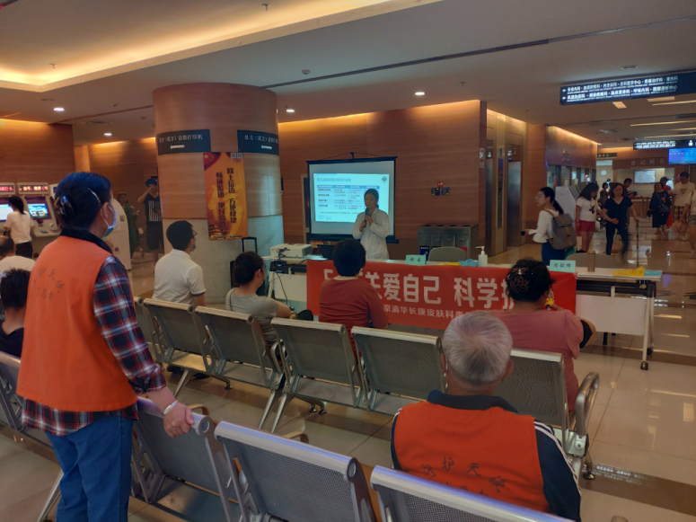 为加强公众对皮肤健康的重视与认知,中国医师协会皮肤科医师分会于2007年将5月25日定为全国“护肤日”,其谐音为“我爱我”,旨在向公众推广和传播正确的护肤知识。今年是第十三届“护肤日”,5月25日北京清华长庚医院皮肤科于上午9时30分在医院门诊大厅举办了宣传主题为“重视皮肤屏障,科学护肤” 的健康护肤宣教及义诊活动。