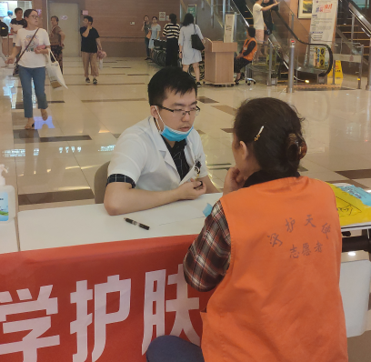 宣教活动结束后舒丹医师、周毅辉医师向约50位现场患者提供免费义诊咨询,热心解答患者的各种问题,并对日常皮肤清洁及护理方式进行宣教,受到患者的一致好评。