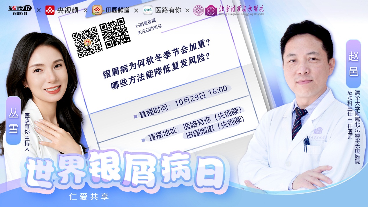 为了提高群众对银屑病及患者的关注和正确认识,给予银屑病患者更多的关爱、尊重和帮助,为此我科赵邑主任于当天下午四点做客央视频·医路有你的直播间,和大家分享银屑病相关知识。