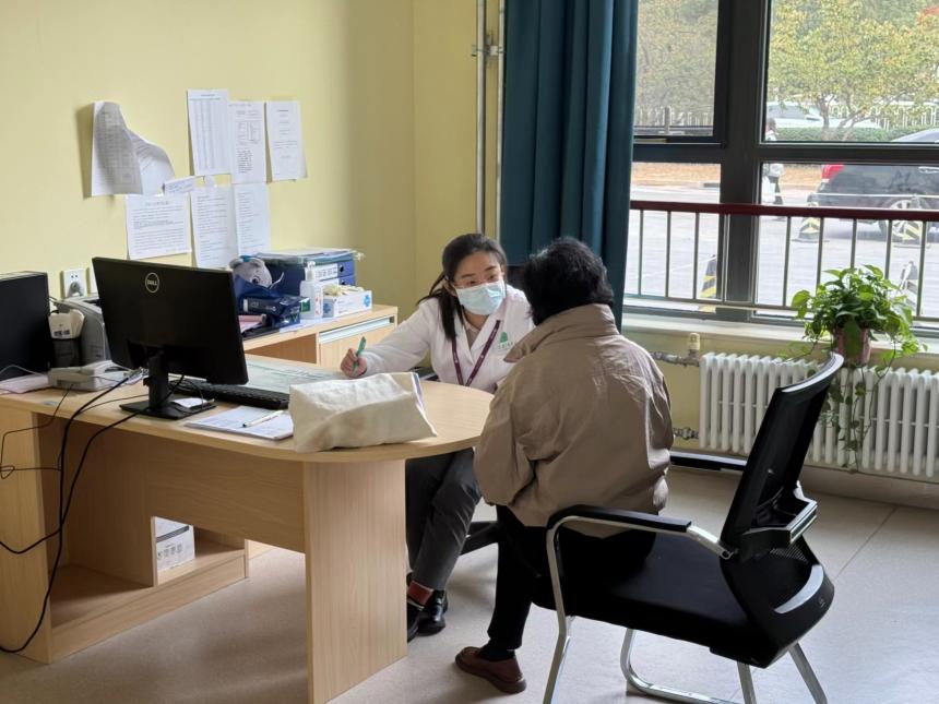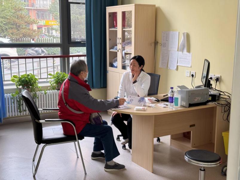 10月29日当天下午,北京清华长庚医院皮肤科舒丹医师和杨光医师在北京市昌平区天通苑北社区卫生服务中心一层大厅,进行银屑病义诊宣教活动。