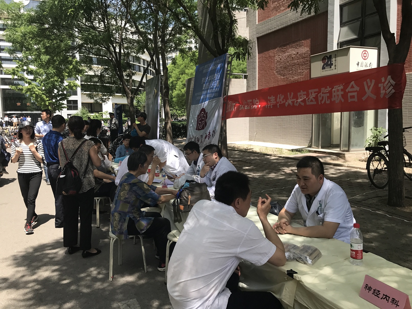 结合清华大学师生的就医需求,我院皮肤科、普通外科、骨科、泌尿外科、神经内科、耳鼻喉头颈外科六专科分别选派了蒋源、白熠洲、刘华玮、苏博兴、魏宸铭、代传福六位医师作为我院代表,在紫荆C楼前与清华大学校医院一同为教职工义诊。两个小时的义诊时间尽管短暂,但慕名而来的教职工络绎不绝,医生们细致耐心的解答得到了大家的一致好评。