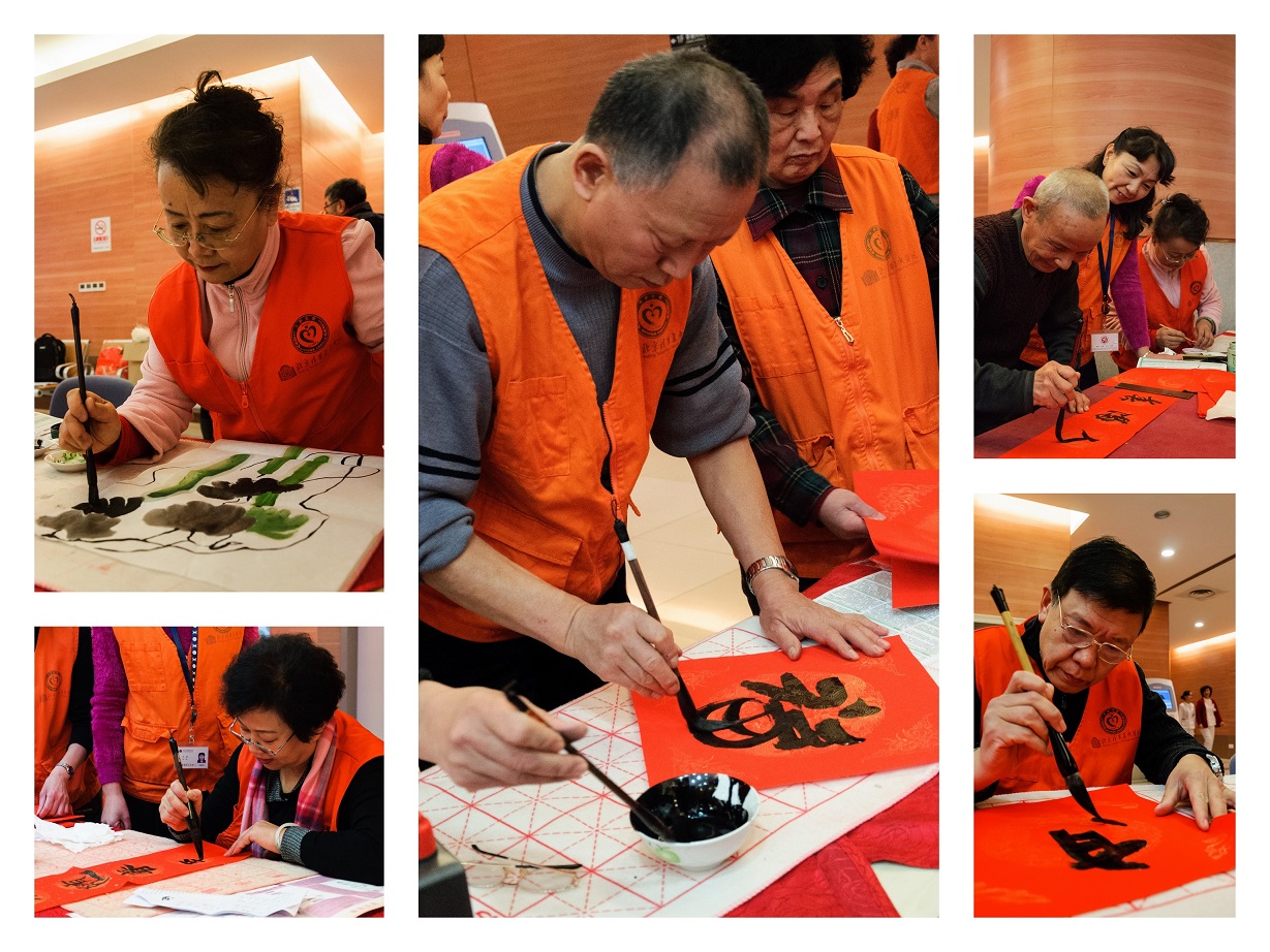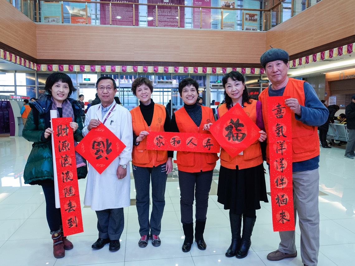 北京清华长庚医院志愿服务工作队与医院同步运营、完善发展,目前已有实名注册并上岗服务志愿者349名。2015年,在日常上岗服务的基础上,志工队创新推出的系列专长志愿服务,搭建起了医院—社区的和谐桥梁,释放出满满的志愿正能量。“挥毫泼墨送祝福”作为其中之一,广受我院患者与周边居民的喜爱。小年将至,随着活动的圆满落幕,志愿者们将祝福寄托在挥毫泼墨的一笔一划中,将爱心传递到千家万户。