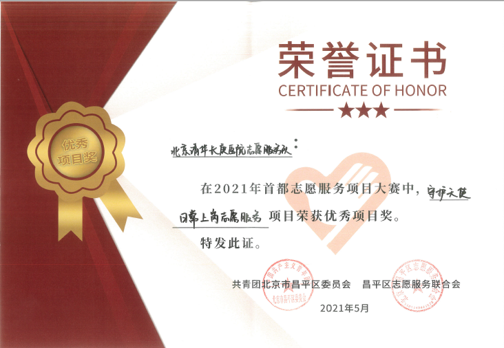 北京清华长庚医院5月25日电(院办 赵婧楠)近日,由共青团北京市委员会、北京市志愿服务联合会共同组织举办的2021年首都志愿服务项目大赛拉开序幕。我院志愿服务项目“守护天使——日常上岗志愿服务”成功从昌平区赛区31个项目中脱颖而出成为12强,6月底将代表昌平区参加北京赛区复赛。