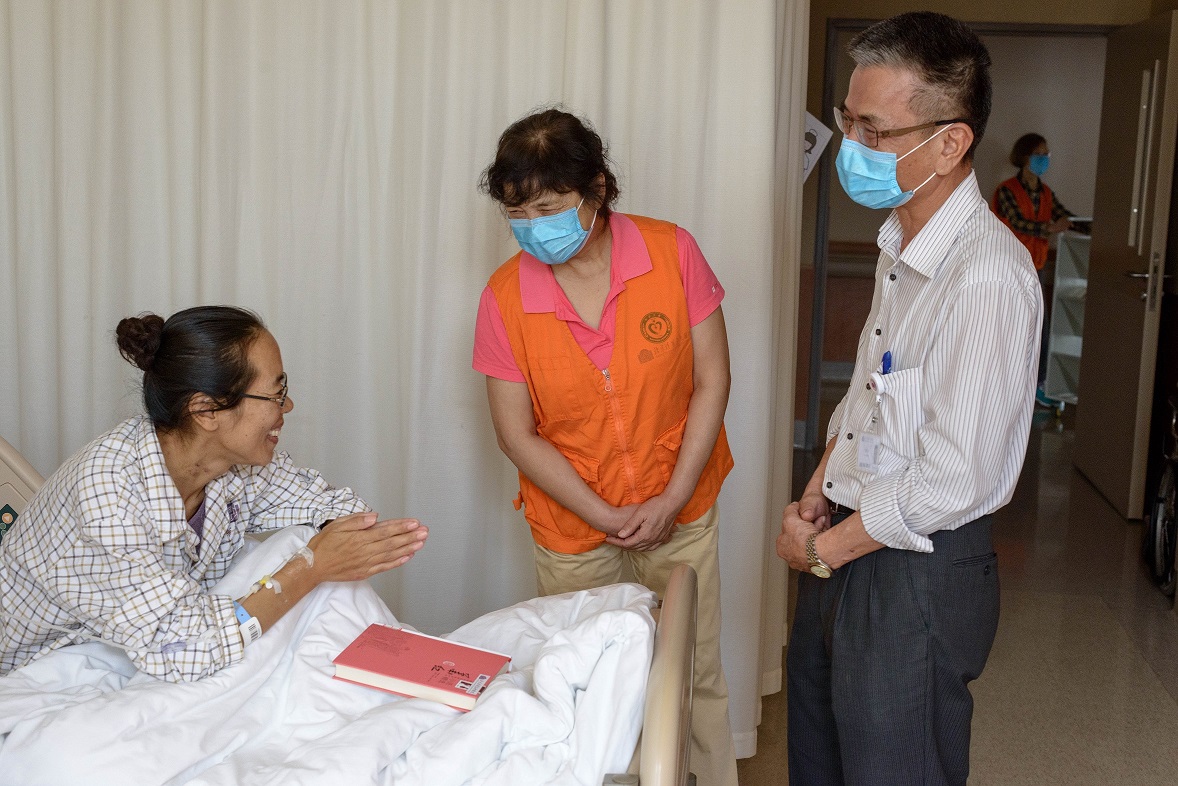 (患者借阅书籍后向郭明和总执行长表达感谢 摄影 刘亨立)