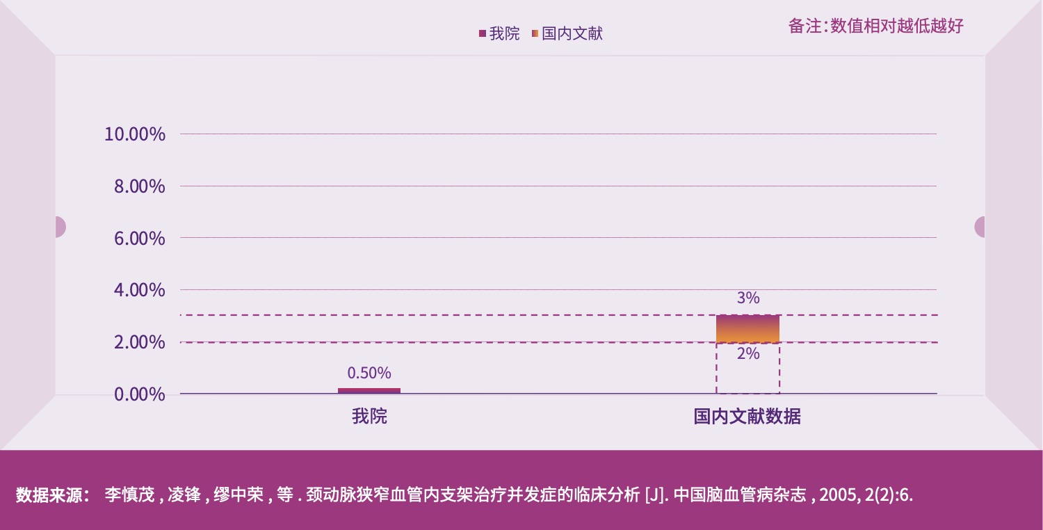 同侧颈动脉远端供血区域脑卒中率是反应颈动脉支架并发症的重要指标,目前国内文献报道数据 2-3%,我院为 0.5%。