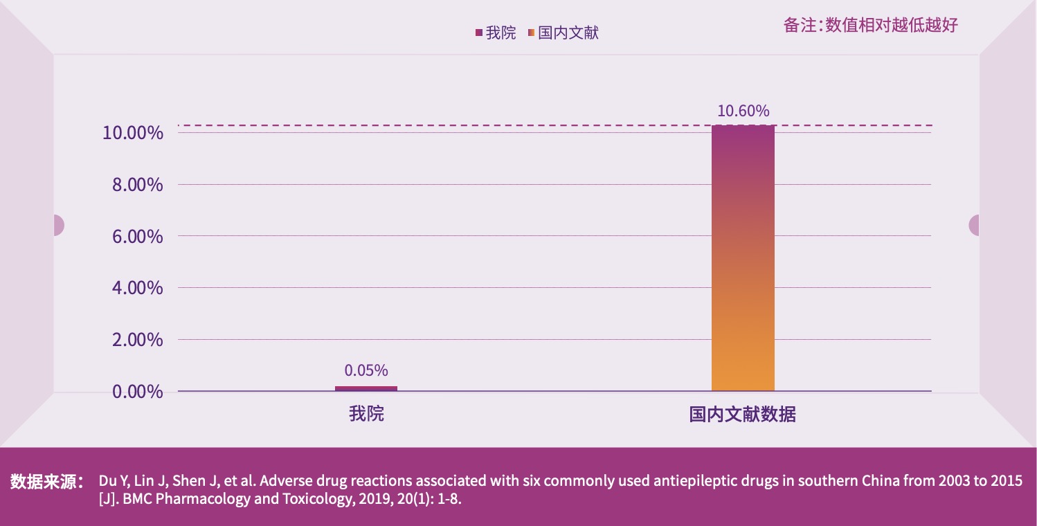 抗癫痫药物严重不良反应发生率是治疗癫痫安全性重要指标,目前国内文献报道 10.60%,我院指标为 0.05%。