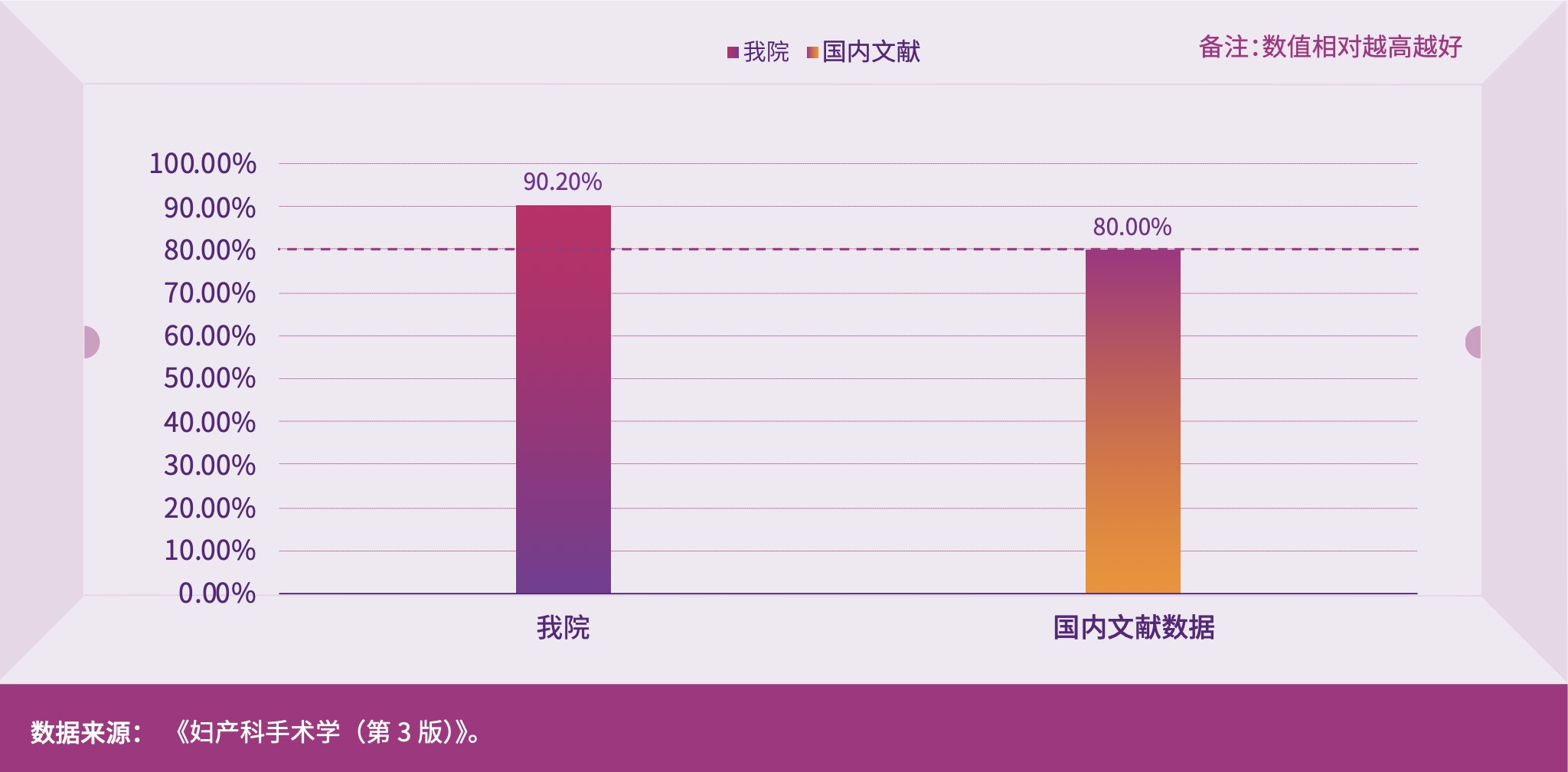 具有完整子宫的孕妇行剖宫产分娩的产妇比例,国内文献报道数据35%,我院妇产科2022年每月初次剖宫产率均<35%,年度初产剖 宫产率低至28%,初产经阴分娩比例更高。
