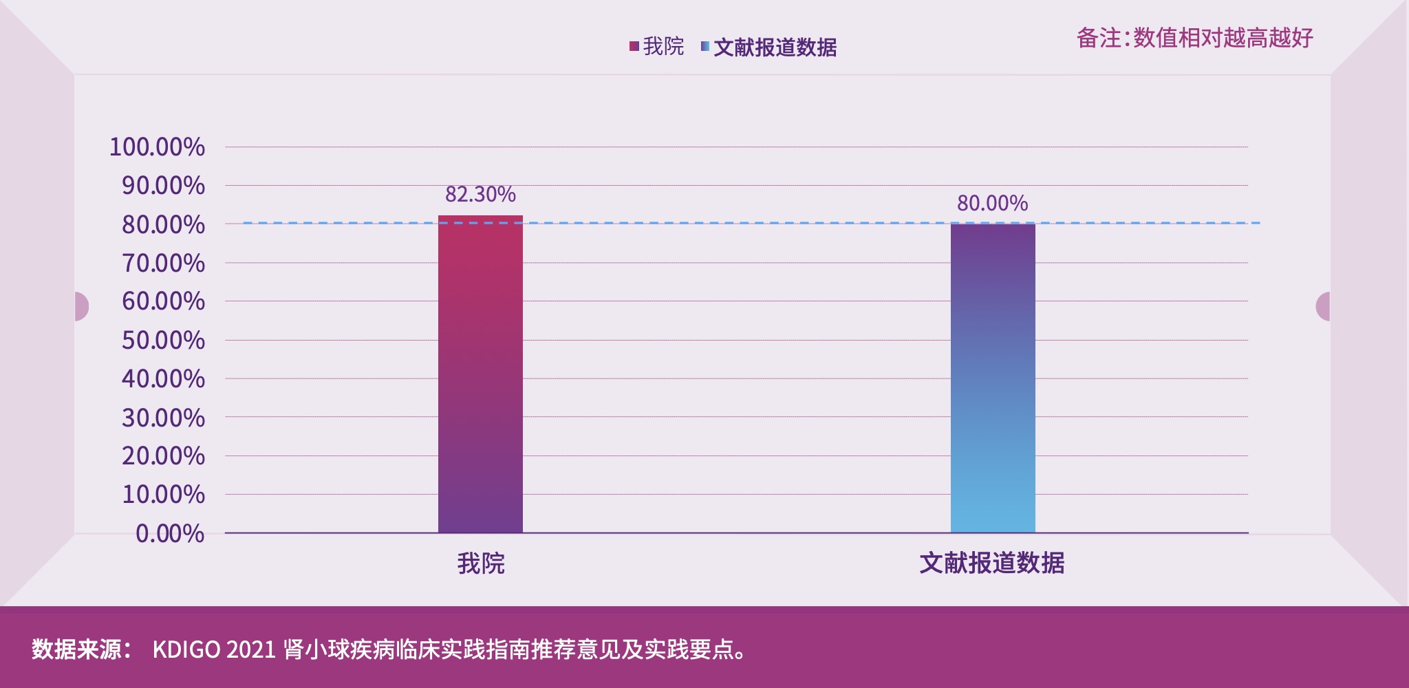 IgA肾病CKD1-3期患者使用RAS阻断剂可显著减少蛋白尿,延缓肾脏病进展,国内外应用率为80%(部分患者不耐受等)。我科开展了多项国内外、多中心的IgA 肾病相关临床试验,使用RAS阻断剂的比例 全年为(82.3%),高于国内外一般比例。