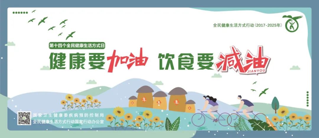 2020年9月1日是第14个“全民健康生活方式日”,活动主题为“健康要加油,饮食要减油”。油是人体必需脂肪酸和维生素E的重要来源,有助于食物中脂溶性维生素的吸收利用,但摄入过多会影响健康。植物油和动物油摄入过多会导致肥胖,增加糖尿病、高血压、血脂异常、动脉粥样硬化和冠心病等慢性病的发病风险。