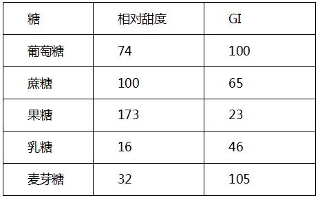 上表列举了不同糖的甜度和升高血糖的能力,其中“相对甜度”指的是某种糖相对于蔗糖的甜度,把蔗糖的甜度定为100,数值越大甜度越大。“GI”我们可以把它理解为某种糖升高血糖的能力,通常将葡萄糖定为100,同样的也是数值越大对血糖影响越大。通过对比我们可以发现甜度最高的果糖对血糖的影响反而最小,而麦芽糖升高血糖的能力是最强的,但是相对甜度却很低。由此可见不甜的食物就对血糖影响小的说法是站不住脚的。 糖尿病的营养治疗就是在控制血糖,延缓并发症出现的基础上尽量提高生活品质,既不用远离美食,也可以控制病情。其实糖尿病并无绝对的饮食禁忌,只要能从生活的一点一滴做起,找出适合自己的饮食模式,糖尿病患者一样可以享受美好人生。(文/北京清华长庚医院营养科杨勤兵、李世阳)