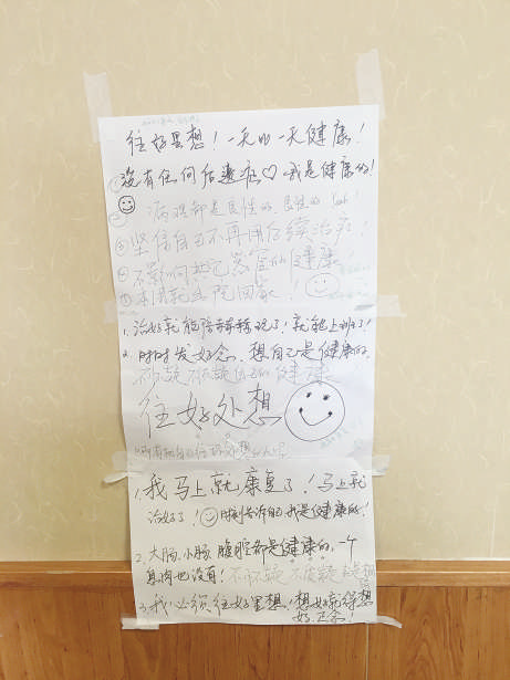 “往好处想,一天比一天健康”“开开心心每一天”……前段日子,在北京清华长庚医院5A病房里,患者孙女士的床边贴了一张大型“便利贴”,上面写满了安慰及祝福的话。这些话不是从网上摘抄的心灵鸡汤,而是孙女士的精神寄托和“救命良药”。