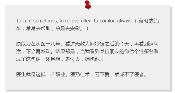 医学的深奥,不仅仅是医术,在这门具体与抽象交织、临床与基础结合、科学与人文并重的学科面前,有时候,我们真的势单力薄,但是更多的时候,即便不能治愈,我们也可以尽绵薄之力。