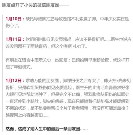 而她去世的起因,就是因为崴了脚!几天之内便昏迷,12天就离开了人世!