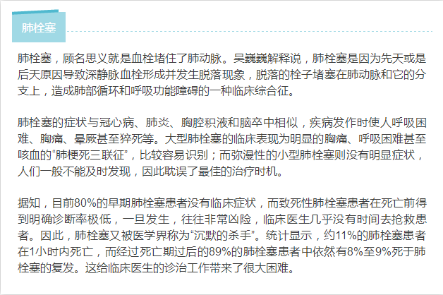 肺栓塞是临床危重症,它有一个优雅却狰狞的名字-Slience Killer。