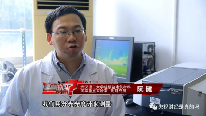 武汉理工大学硅酸盐建筑材料 国家重点实验室 副研究员 阮健:“我们用分光光度计来测量玻璃对紫外线的阻隔能力,通过分别测量经过玻璃样品,和没有经过玻璃样品光线的强度,比较计算得到玻璃对紫外线阻隔能力的大小。”