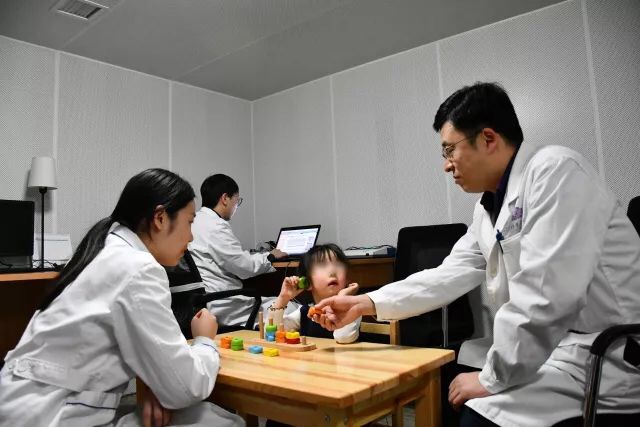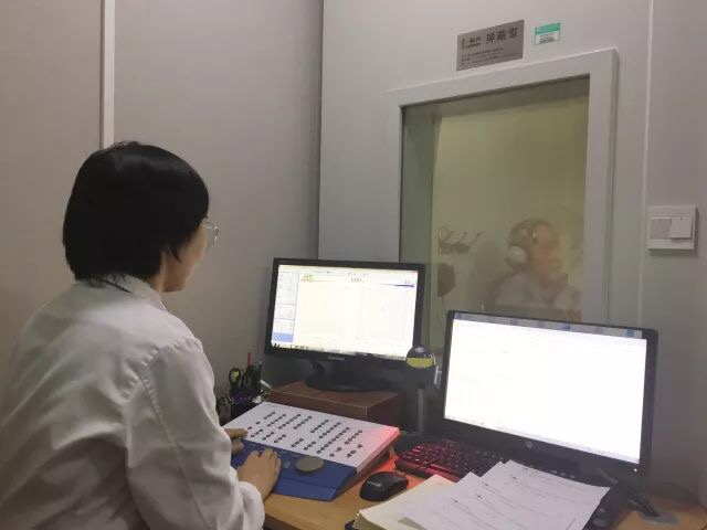 图为耳鼻咽喉头颈外科医师与听力技师为植入人工耳蜗的患儿进行术后调机