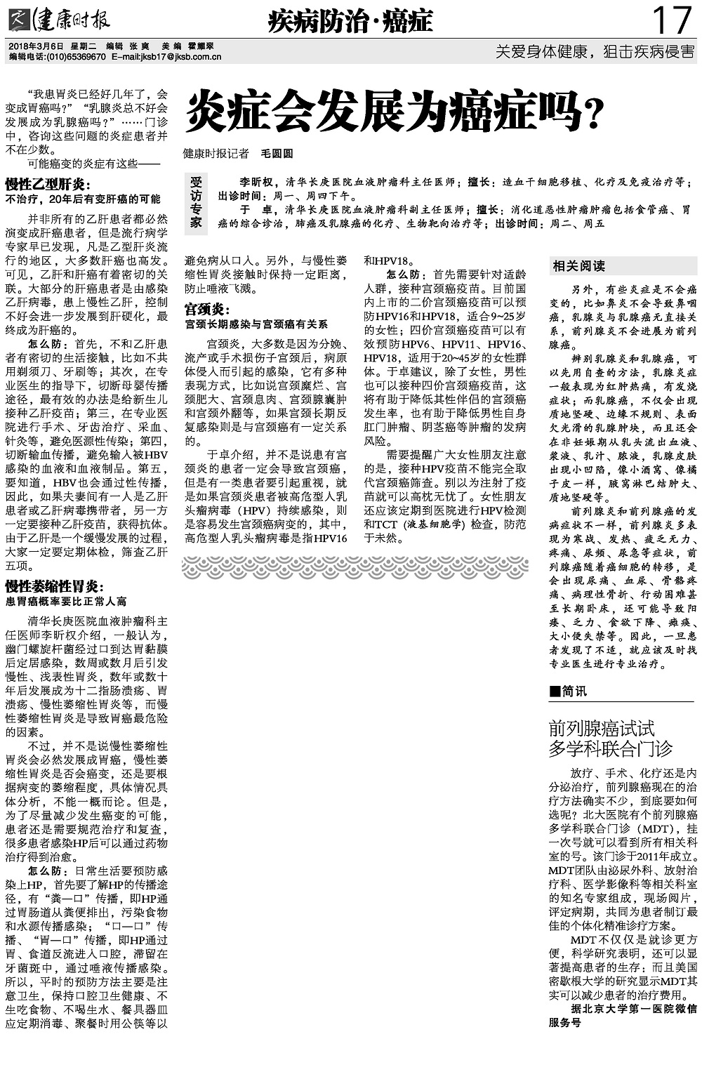 “我患胃炎已经好几年了,会变成胃癌吗?”“乳腺炎总不好会发展成为乳腺癌吗?”……门诊中,咨询这些问题的炎症患者并不在少数。