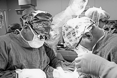 图为董家鸿院士与陈肇隆院士联手为患儿进行肝移植手术。光明图片