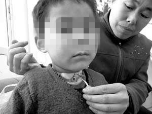 图为2003年,国翔靠一根铁管来维系生命(供图)