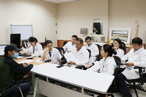 图为肝胆肿瘤多学科联合门诊在诊间为患者义诊