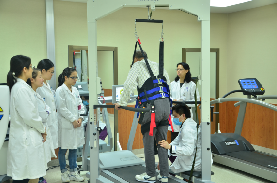 清华长庚医院潘钰主任(右一)指导患者进行康复治疗 孙小花/摄