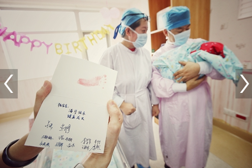 "来来来,咱们唱个歌儿吧!"医务人员们选了最能代表他们心情的"亲亲我的宝贝"。"我要飞到无尽的夜空,摘颗星星作你的玩具,我要亲手触摸那月亮,还在上面写你的名字……最后还要平安回来"。歌曲唱着唱着,襁褓里的"小苹果"乐了,医务工作者和"小苹果"的父母回忆起这一个月的点点滴滴,却都落泪了。在印着"小苹果"脚印的贺卡上,接生的医师、儿科所有的医护人员一起写下了他们真挚的祝福--"满月快乐,健康长大"。(北青报记者 张小妹 摄影刘畅)