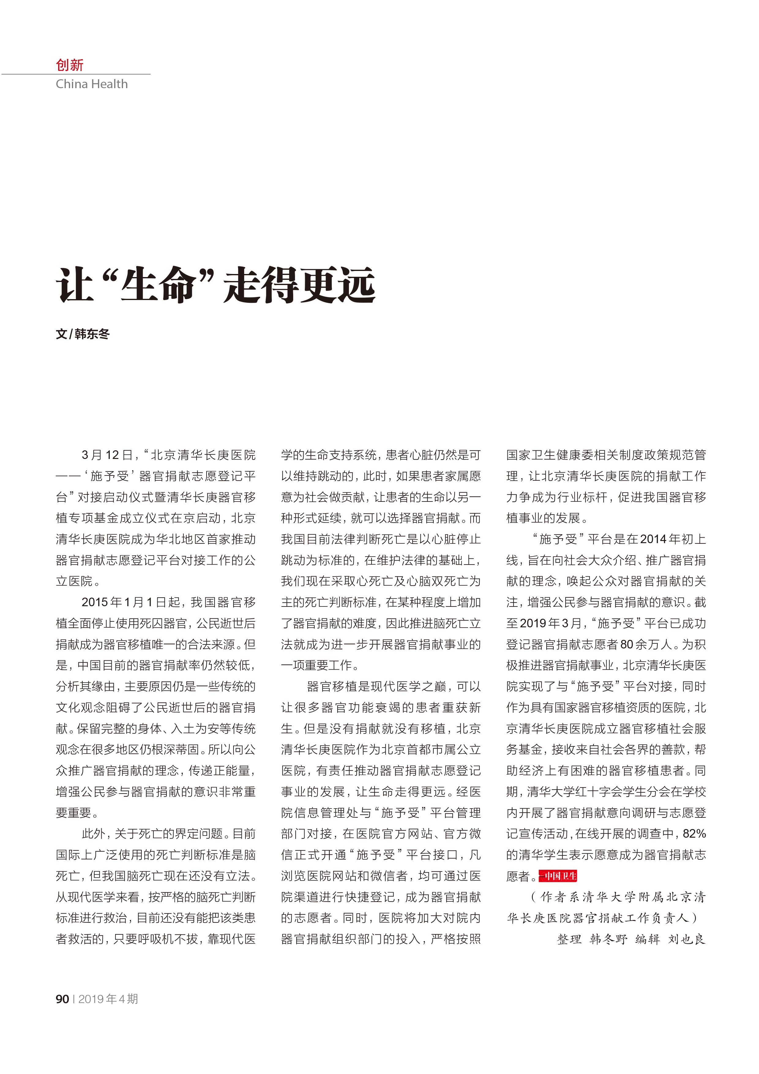 中国卫生杂志刊登我院与“施予受”器官捐献志愿登记平台对接启动文章