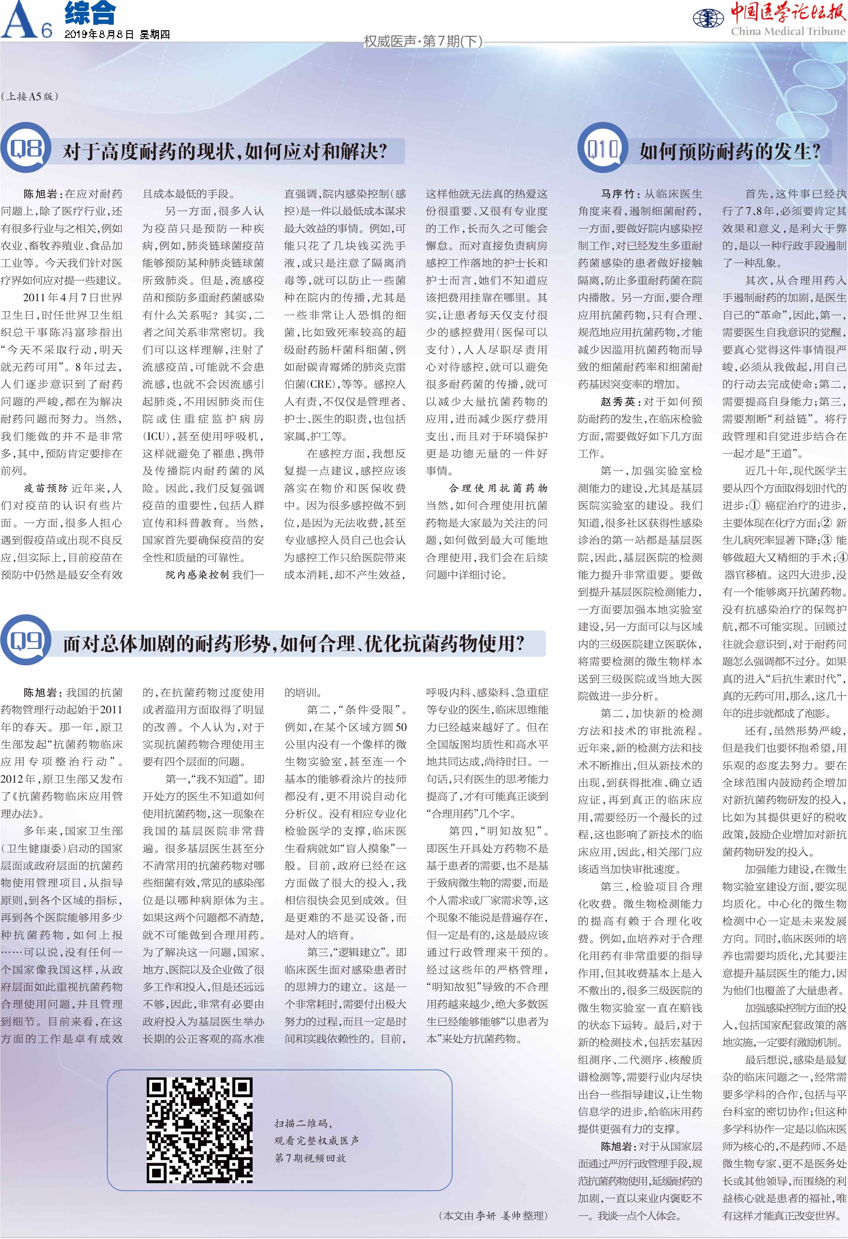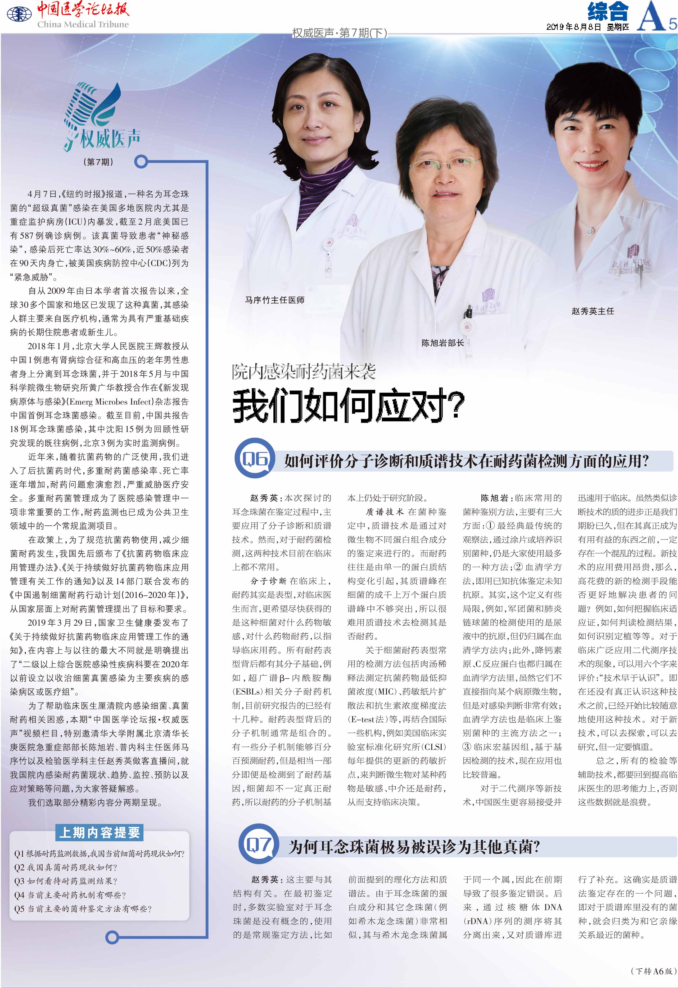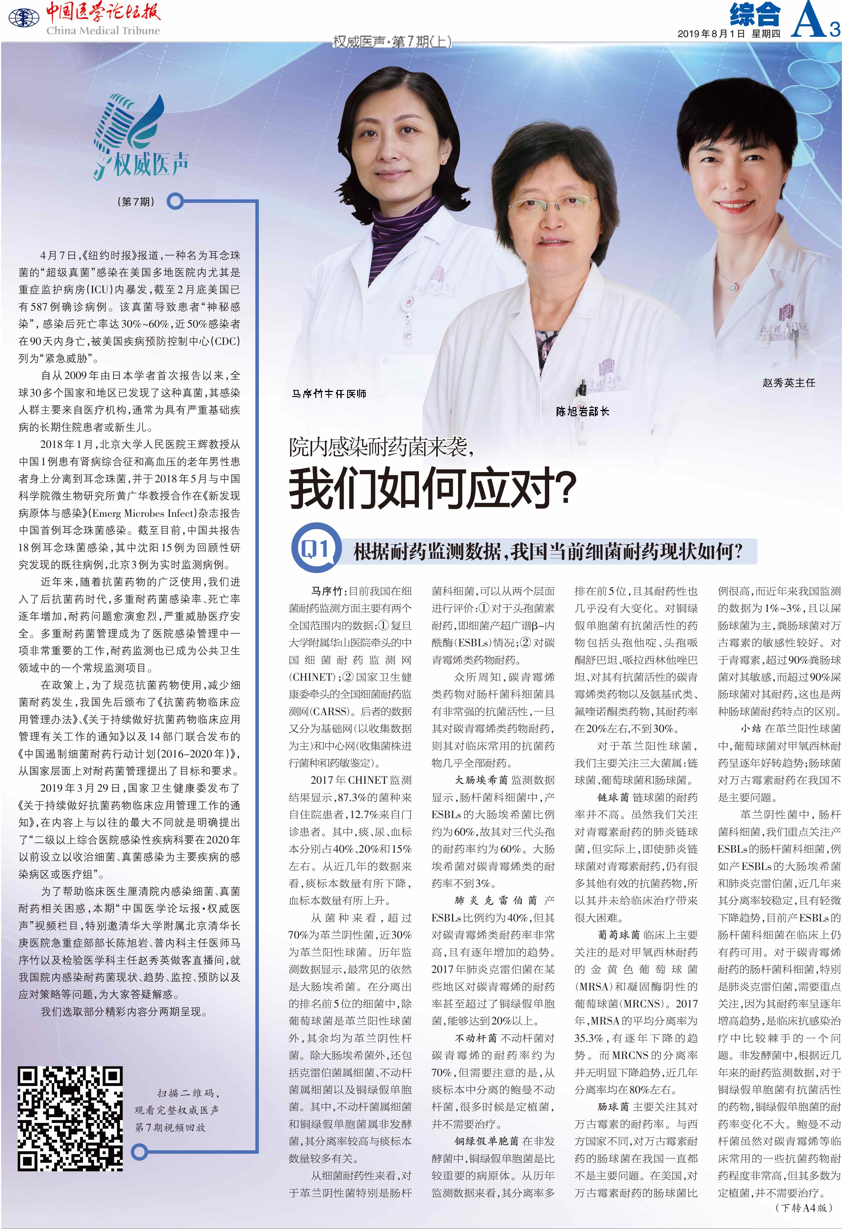 《中国医学论坛报》采访我院陈旭岩部长、赵秀英主任、马序竹主任医师:院内感染耐药菌来袭,我们如何应对?