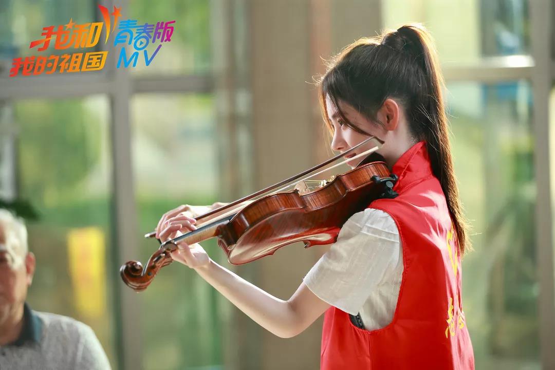 “我和我的祖国,一刻也不能分割,无论我走到哪里,都流出一首赞歌……”在和煦温暖的阳光下,鞠婧祎身穿青年志愿者服装,用她的小提琴演奏着《我和我的祖国》,美妙的音符从琴弦上缓缓流淌着,敬老院的爷爷奶奶也加入其中轻声合唱,熟悉的旋律,把每个人的情绪都带到了最高点,仿佛都在诉说着:我爱你,祖国!