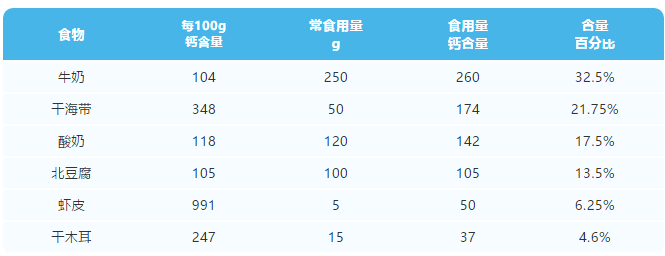 * 以上的食材组合大概可以达到成人每天的钙摄入量,可根据个人习惯适当增减,如果难以每天坚持,可以考虑增加钙片补充。