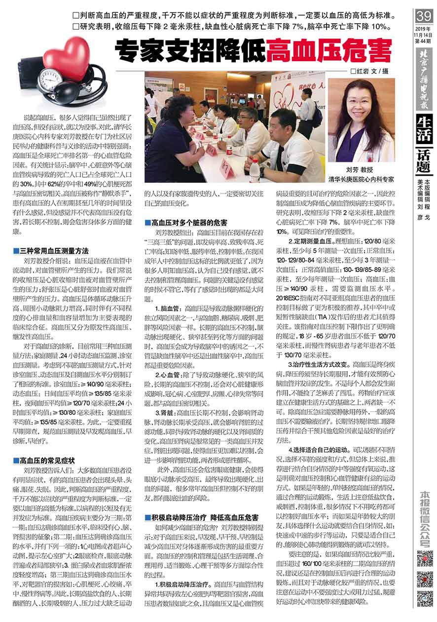 《北京广播电视报》报道我院心脏内科义诊活动:专家支招降低高血压危害