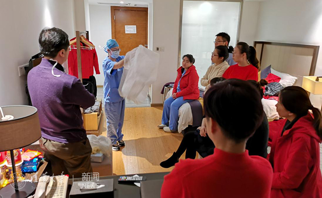 穿上防护服后,队员们需要不间断地完成医疗照护工作,不能吃喝、不能上厕所,直到脱下防护服。
