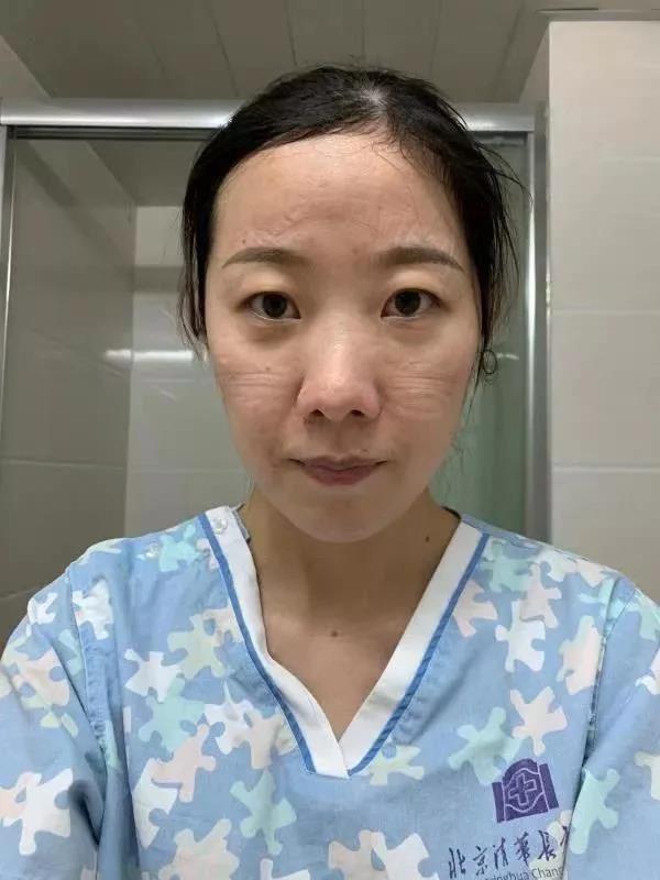 当天,孙雪洁21:30从隔离病区走出来,摘掉护目镜后感觉整个世界都亮了,摘掉口罩帽子后,她发现自己的脸被汗渍泡得浮肿,勒痕触目惊心。“照镜子时第一次觉得自己毛孔怎么那么粗大,皮肤粗糙,嘴唇发紫,真是丑爆了……”