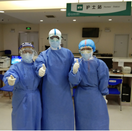 到武汉之后,我们对口支援的是武汉协和医院西院区,投入工作之前常会有人问害怕吗?我就是感觉有点忐忑,毕竟SARS时期我还在上中学,紧张的感觉不明显。我怕工作流程不熟悉,怕自己能力有限无法帮到病人,怕完成不好组织安排的工作……工作第一天的和协和医院的一位同仁一起照顾12个病人,体验谈不上好与不好,就是不没那么忐忑了,从刚开始的不熟悉到明确自己的工作内容,工作流程,除了它是传染的,我们需要的做好隔离,做好防护,做好消毒等以外,似乎和我的日常工作没有太多的不同。为了防护,我们需要一层一层的穿防护服,把自己包的和粽子似的,这不仅是自我保护,也是对病人的保护,但着实会感觉憋得慌,护目镜起雾看不清,刚进去半个小时,我还在想会不会提前“阵亡”啦,不然那就尴尬了……第一天脱完防护服出来的时候,感觉可以自由呼吸真好。随后的几个班工作就越来越上手了。