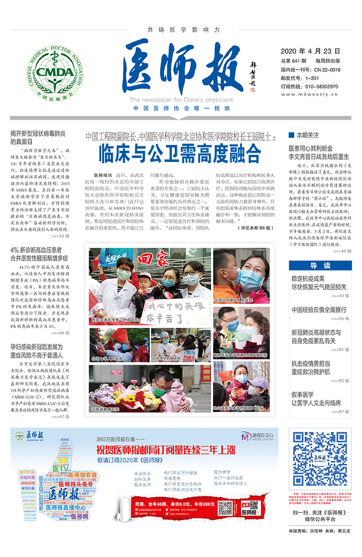 《医师报》头版刊登我院支援武汉医疗队回家的照片