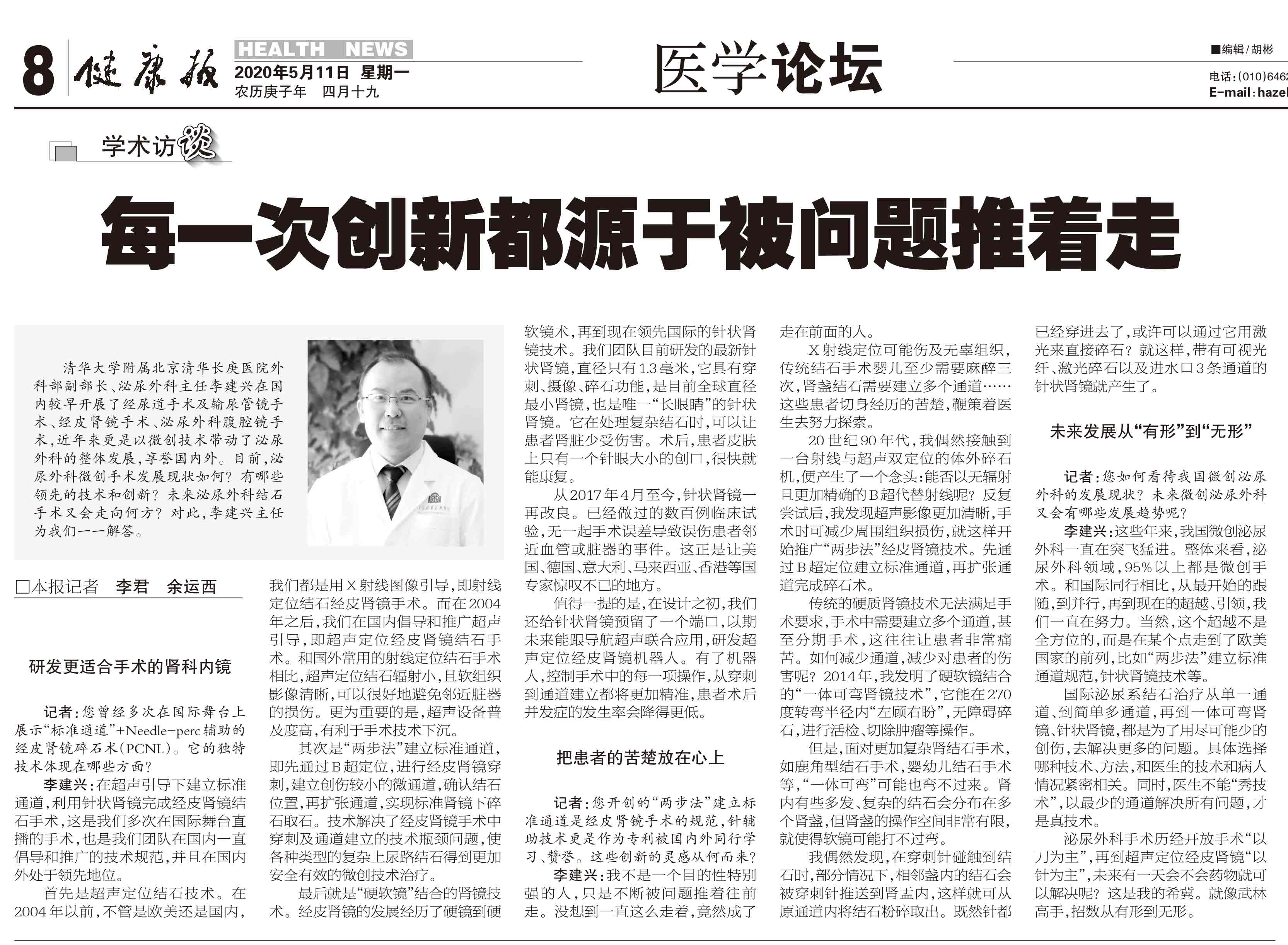 记者:您开创的“两步法”建立标准通道是经皮肾镜手术的规范,针辅助技术更是作为专利被国内外同行学习、赞誉。这些创新的灵感从何而来?