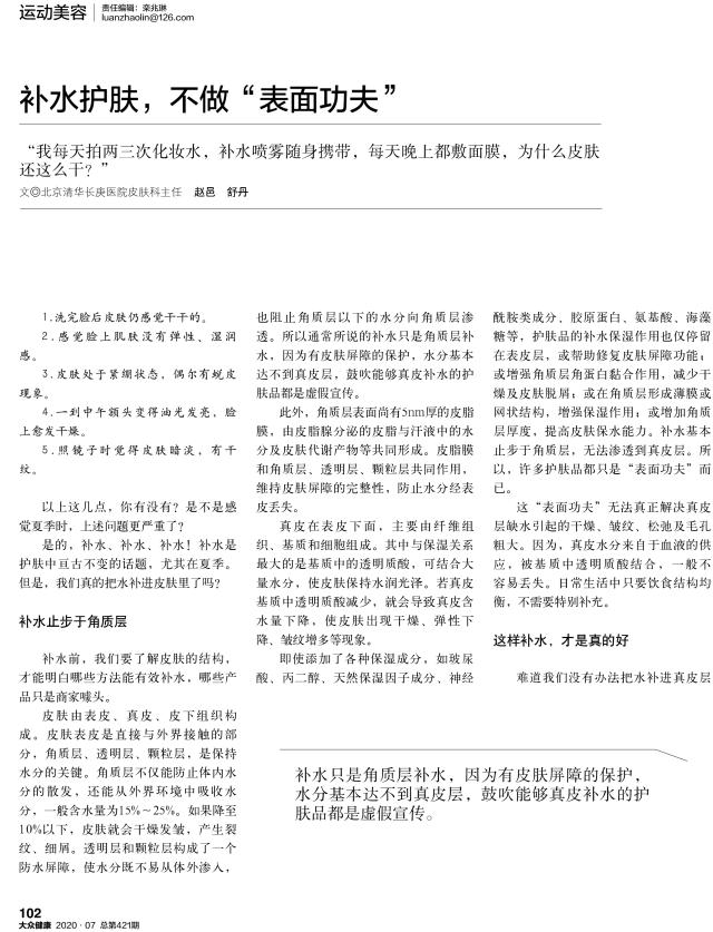 《大众健康杂志》发表清华长庚皮肤科护肤科普