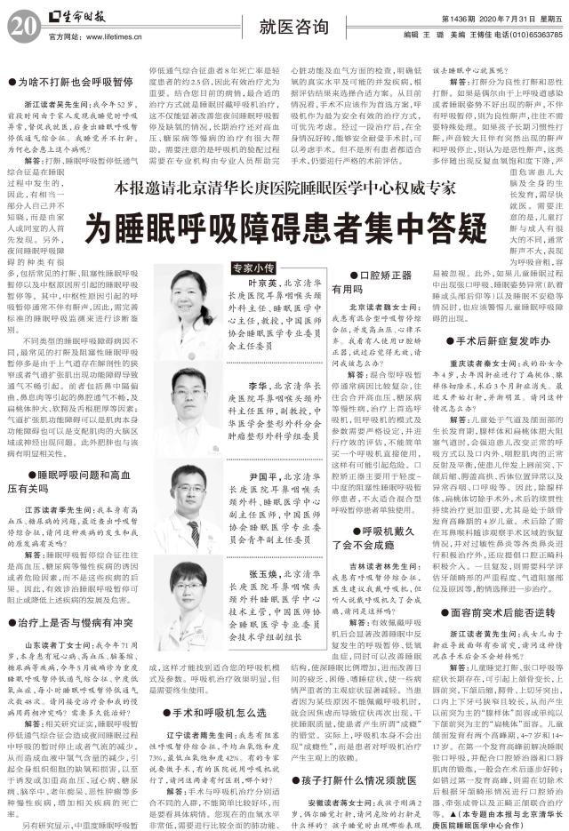 本报邀请北京清华长庚医院睡眠医学中心权威专家