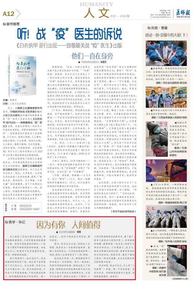 笑宝 , 在你出生以前 , 妈妈的人生理想, 就是成为一名能够治愈疾病、温暖心灵的好医生。从你呱呱落地的那一刻起, 我的人生角色里多了一项: 妈妈。在你成长的每一天, 妈妈都在学习如何成为一名好妈妈。我们一起阅读 , 你爱听妈妈讲的故事, 妈妈也爱上了讲故事, 妈妈把给你讲故事的情节设计运用到了给大学本科生的授课中去, 大孩子们也爱听 , 妈妈从此爱上了教学 ; 小小的你等着妈妈加班做手术 , 累了困了 , 就自己睡在办公室的沙发上, 半夜被妈妈唤醒 , 揉着睡眼一起回家 ; 妈妈作为神经外科医生 , 工作强度大 , 压力大 , 难免有情绪失控的时候, 看着你委屈的泪水夺眶而出 , 妈妈自责 , 像犯了错的小朋友一样向你道歉, 你总是回报给我无限的爱与包容。